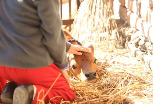 The cowshed with multiple cows provides a farm experience to the children who study animals and food.
